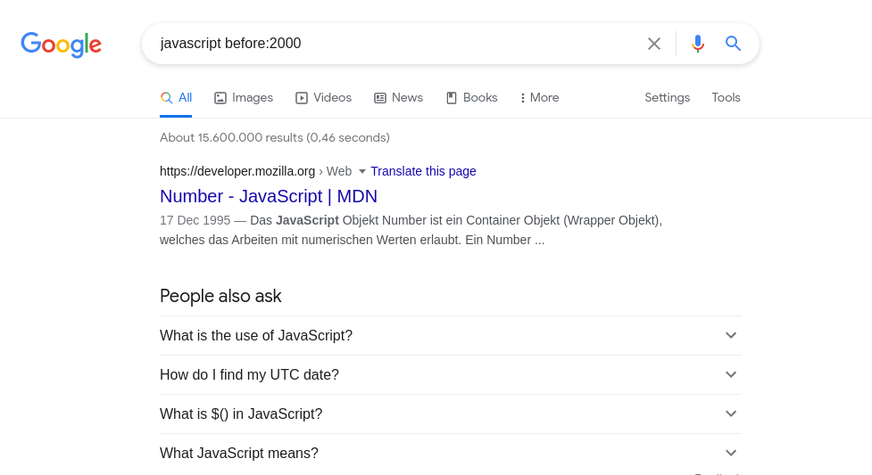引号强制进行完全匹配搜索:"what is javascript"AND只会返回和它们都相关的搜索结果:html AND cssOR获取搜索词中某一个的结果:(javascript OR python) free course-将排除包含搜索词的结果:javascript -css*它将被任何单词或短语替换。"how to start * in 6 months"site:freecodecamp.orgfiletype:pdf learn cssecmascript 2016..2018before运算符仅返回给定日期之前的结果必须提供年月日日期或仅年。例如: